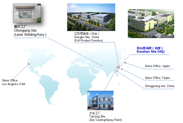 思瑞奕電子有限公司成立于2010年10月,注冊(cè)資金7500萬人民幣,總部位于江蘇省昆山市,在重慶、江蘇東臺(tái)、江蘇太倉(cāng)設(shè)有分廠,公司于2011年通過ISO9001/ISO14001認(rèn)證,2013年通過高新技術(shù)企業(yè)和TS16949(IATF)體系認(rèn)定,2016年先后通過知識(shí)產(chǎn)權(quán)管理體系認(rèn)證、安全生產(chǎn)標(biāo)準(zhǔn)化認(rèn)證,2017年獲頒江蘇省民營(yíng)科技企業(yè)、2018年先后獲得蘇州市人民政府認(rèn)定企業(yè)技術(shù)中心、科技部認(rèn)定中小型科技企業(yè)、江蘇省最具成長(zhǎng)性高科技企業(yè)、2020年獲得江蘇省人民政府認(rèn)定企業(yè)技術(shù)中心、2021年獲得蘇州市瞪羚計(jì)劃入庫(kù)企業(yè)、江蘇省省級(jí)工程技術(shù)研究中心、江蘇省專精特新中小企業(yè)等榮譽(yù)稱號(hào)......